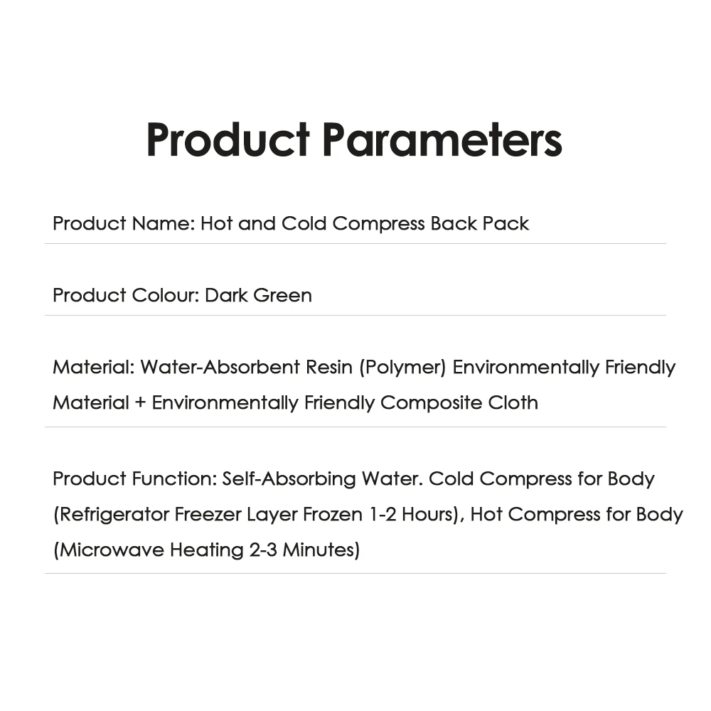 Product Function: Self-Absorbing Water. Cold Compress for Body (Refrigerator Freezer Layer Frozen 1-2 Hours), Hot Compress for Body (Microwave Heating 2-3 Minutes)